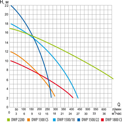Технические характеристики дренажных насосов серии DWP, DWP CS